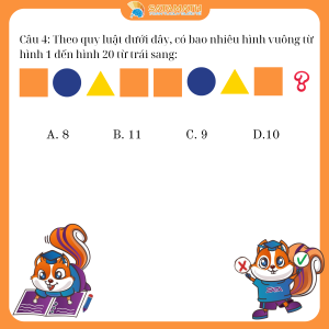 - Suy luận (D): Mỗi chu kỳ (4 hình) có 2 hình vuông.